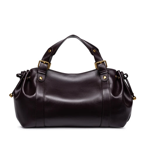 Premium First Layer Cowhide Boston Genuine Leather Women's Bag Simple Large Capacity Bowling Armpit Bag Portable Messenger Bag -